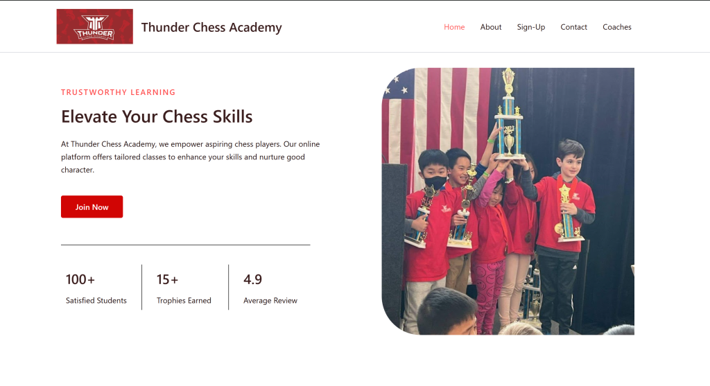 A project that I began working on over the summer (while in Arizona, California, Washington, and wherever) was to revitalize the website for Thunder Chess Academy. The chess academy is online and headquartered in Ohio. The summertime provided a great opportunity to revamp the website– the academy wasn’t able to run summer classes due to a lack of sign-ups and available coaches. However, I was traveling the country with my girlfriend. Good things happen at bad times.