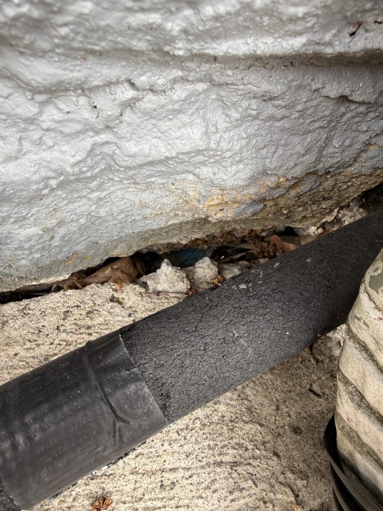 The glimmer of light, which also looks to be nothing at all, is the ring. This crack goes into the foundation of the house, but luckily I retrieved the ring with a bent wire. With silver prices these days, that would’ve been a big loss.